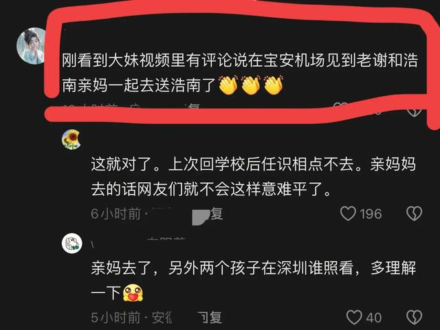 据悉有网友看到此次浩男返回学校是老谢和亲妈一起送的。
