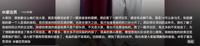 谢浩男看不下去了深夜发文支持父亲,但这招对于被骗许久的网友们来说并不管用。