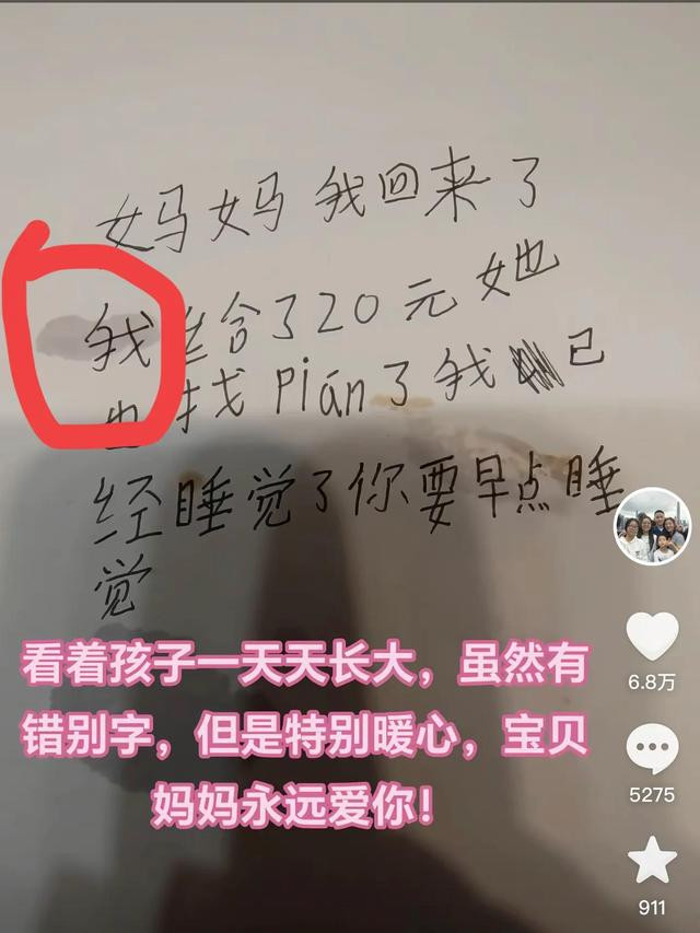但当谢妈看到女儿留的纸条上面还在提醒自己要早点睡,也是留下了一滴心疼的泪水。